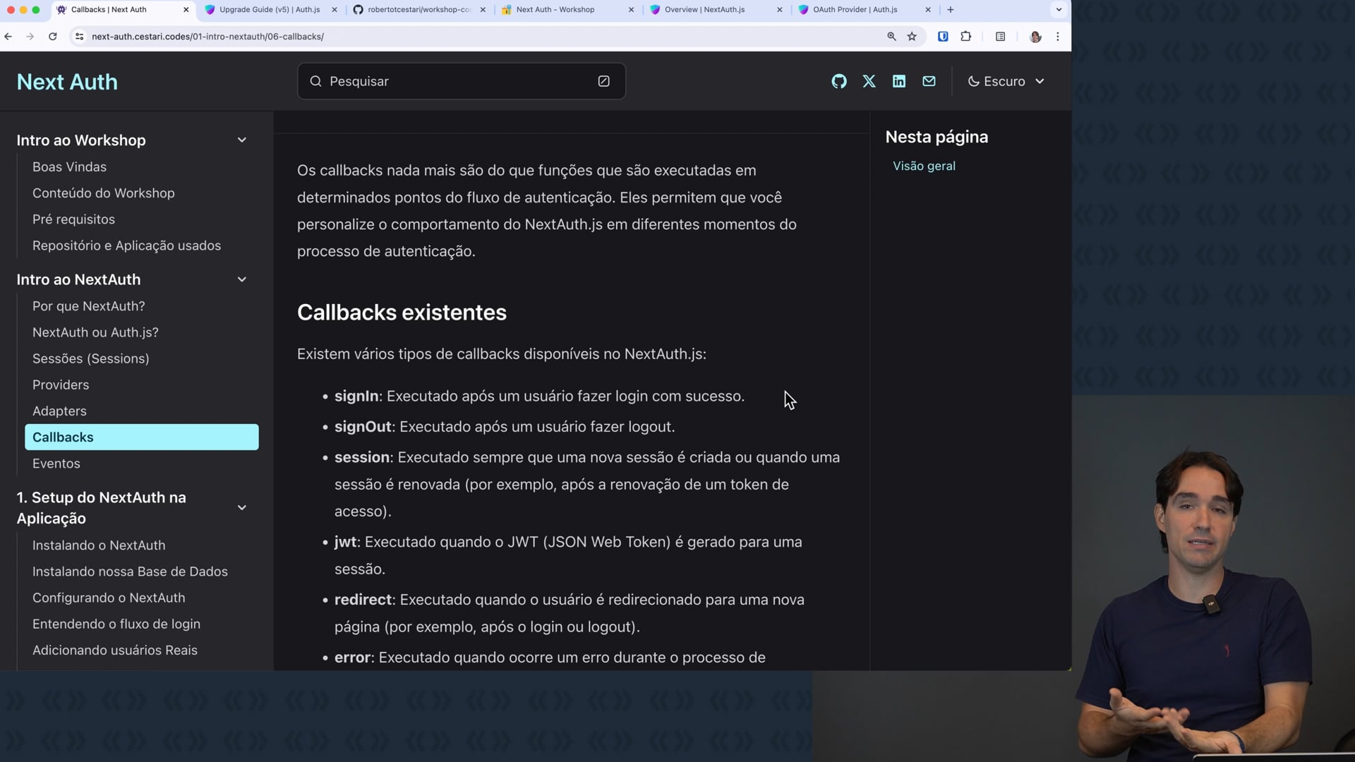 Neste vídeo, exploramos a função dos callbacks e eventos no contexto do NextAuth.js. Discutimos como eles são chamados após eventos importantes, permitindo a inserção de código específico para realizar ações ou comportamentos específicos. Além disso, diferenciamos seu uso; callbacks para alterar o fluxo de autenticação e eventos para registrar ações na base de dados.
