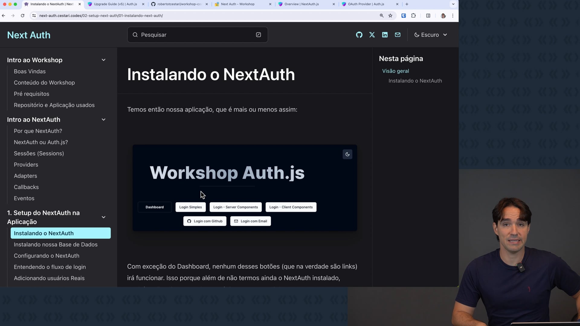Instalamos a biblioteca NextAuth na versão 5 na nossa aplicação e explicamos a importância dessa versão para o projeto. Também configuramos a base de dados Prisma e apresentamos o SQLite como nossa opção de base de dados por ser uma solução baseada em arquivo, simples e amplamente utilizada.