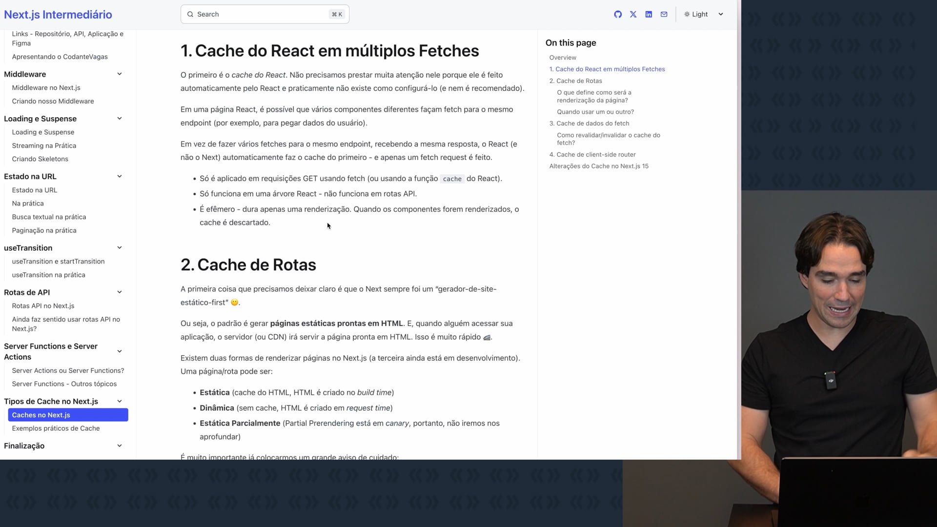 Encerramos o workshop, agradecendo a audiência e respondendo às perguntas finais sobre o sistema de cache no Next.js. Explicamos como fazer uma busca em uma página estática, abordamos o `ISR` (Incremental Static Regeneration) e seus casos de uso. Reforcamos a importância de entender os conceitos de cache.