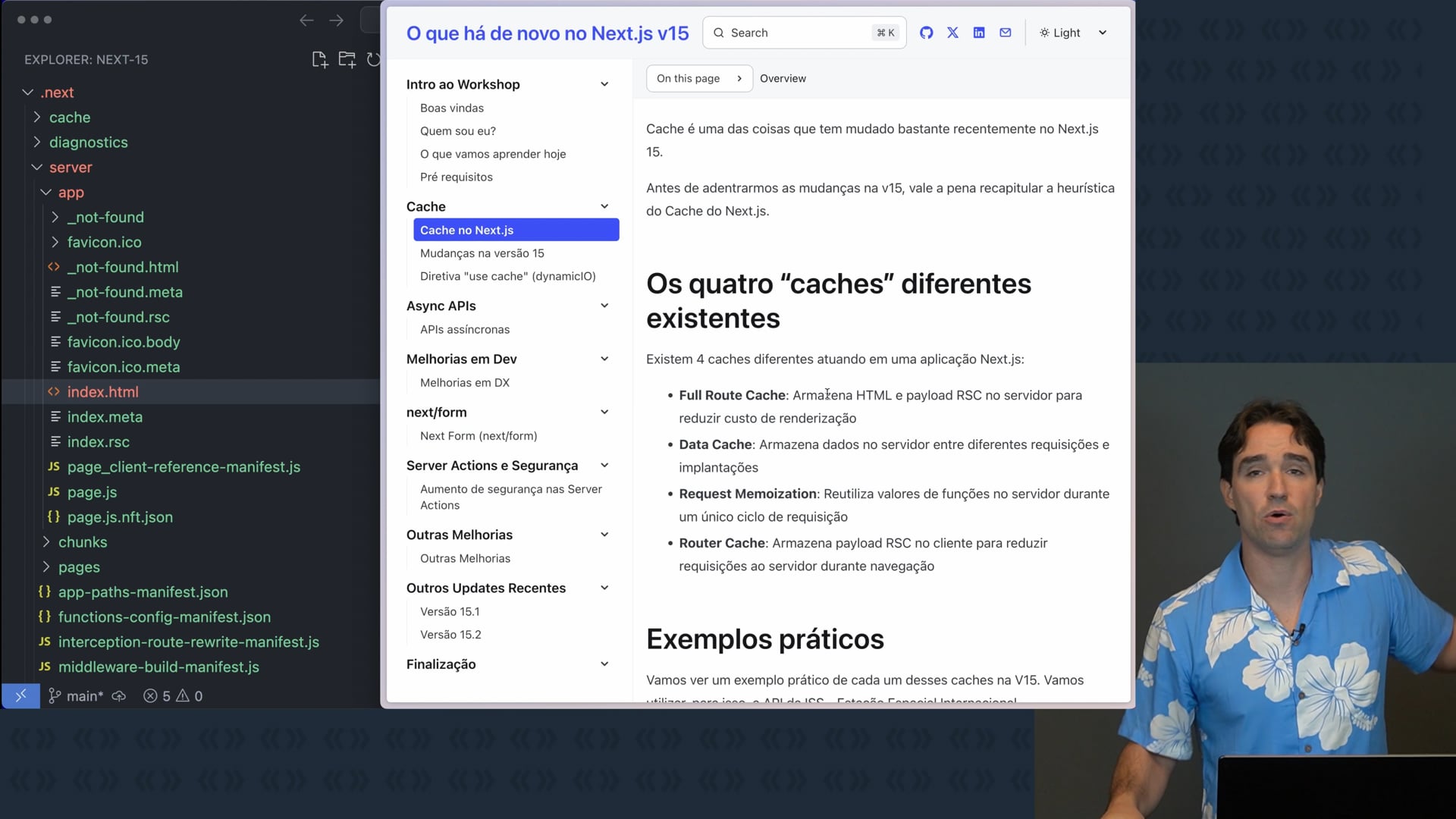 Demonstramos como as páginas estáticas e dinâmicas se comportam com o novo sistema de cache do Next.js na versão 15.