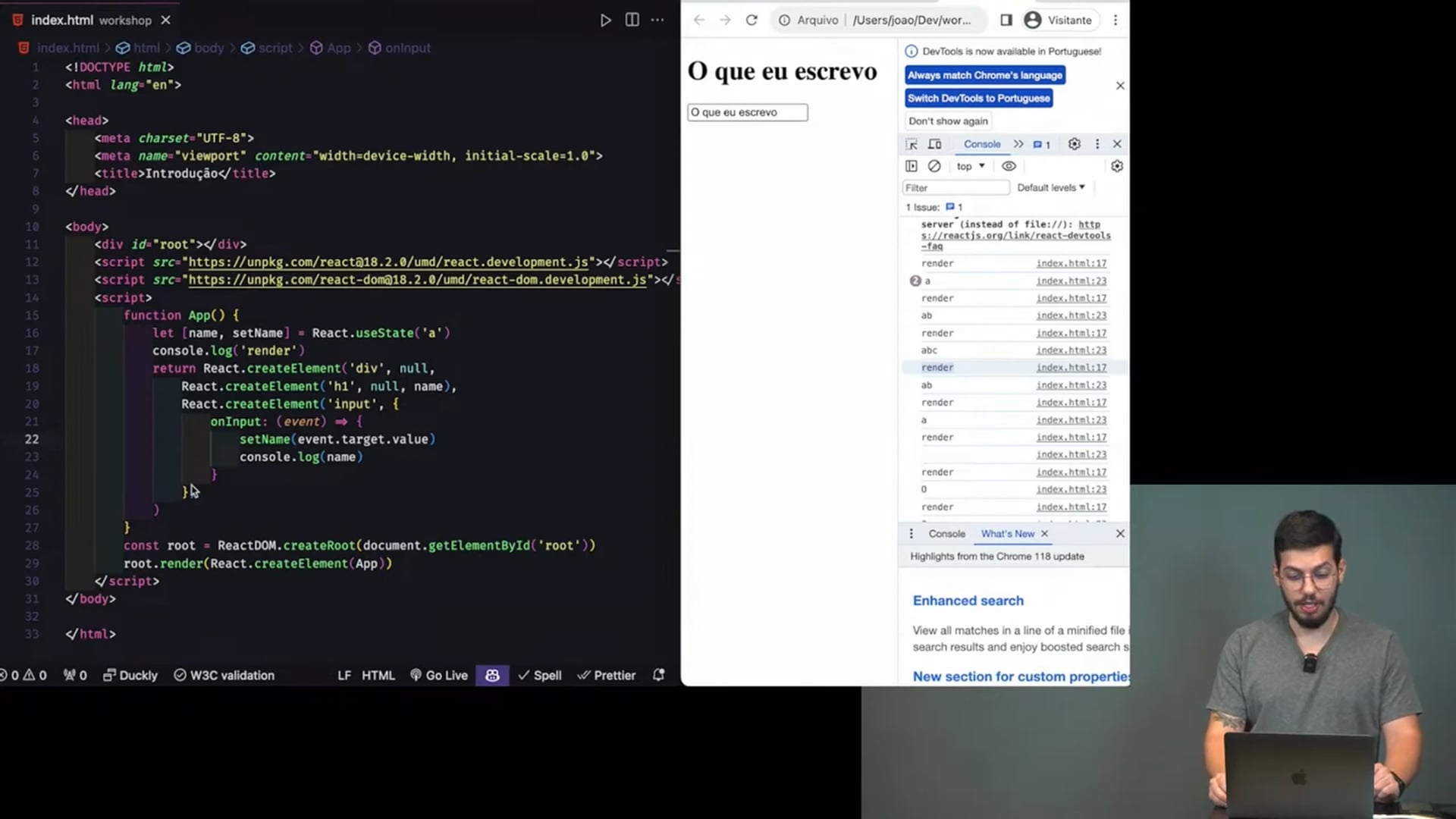Estamos configurando um ambiente de desenvolvimento com Vite para trabalhar com JSX, incluindo hot reload para aprimorar a experiência. Utilizamos Node, yarn, e adicionamos dependências como React, ReactDOM, Previewer e ESLint. Organizamos o código em `app.js` para manter a estrutura limpa e eficiente.