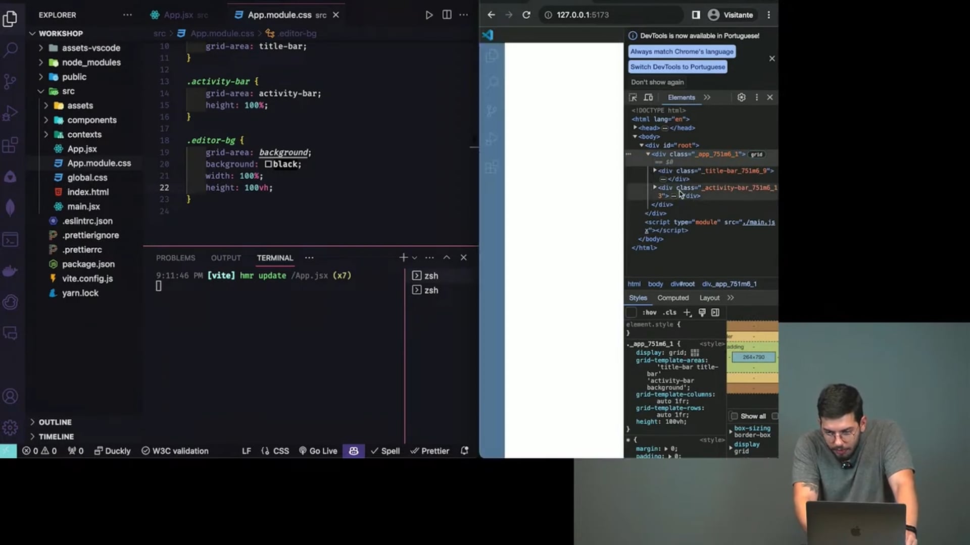 Estamos criando um fundo no app utilizando React e CSS. Exploramos classes CSS, propriedades como cor, altura e divisores de espaço para a atividade. Discutimos a modularização do CSS e ajustamos elementos visuais para otimizar a visualização.
