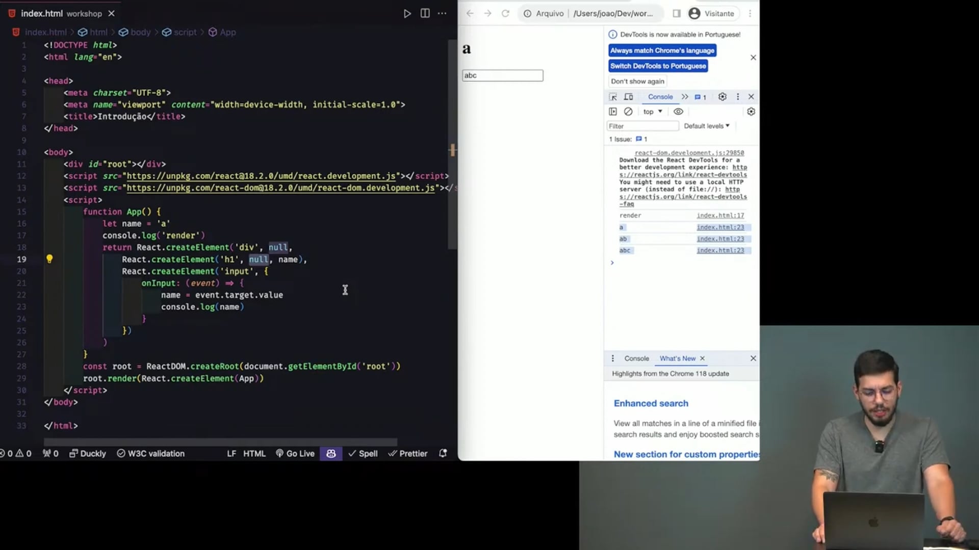 Exploramos o uso do hook `useState` para gerenciar o estado no React, permitindo que o texto reaja às entradas do usuário. Destacamos a necessidade dos hooks estarem em nível superior para evitar erros.