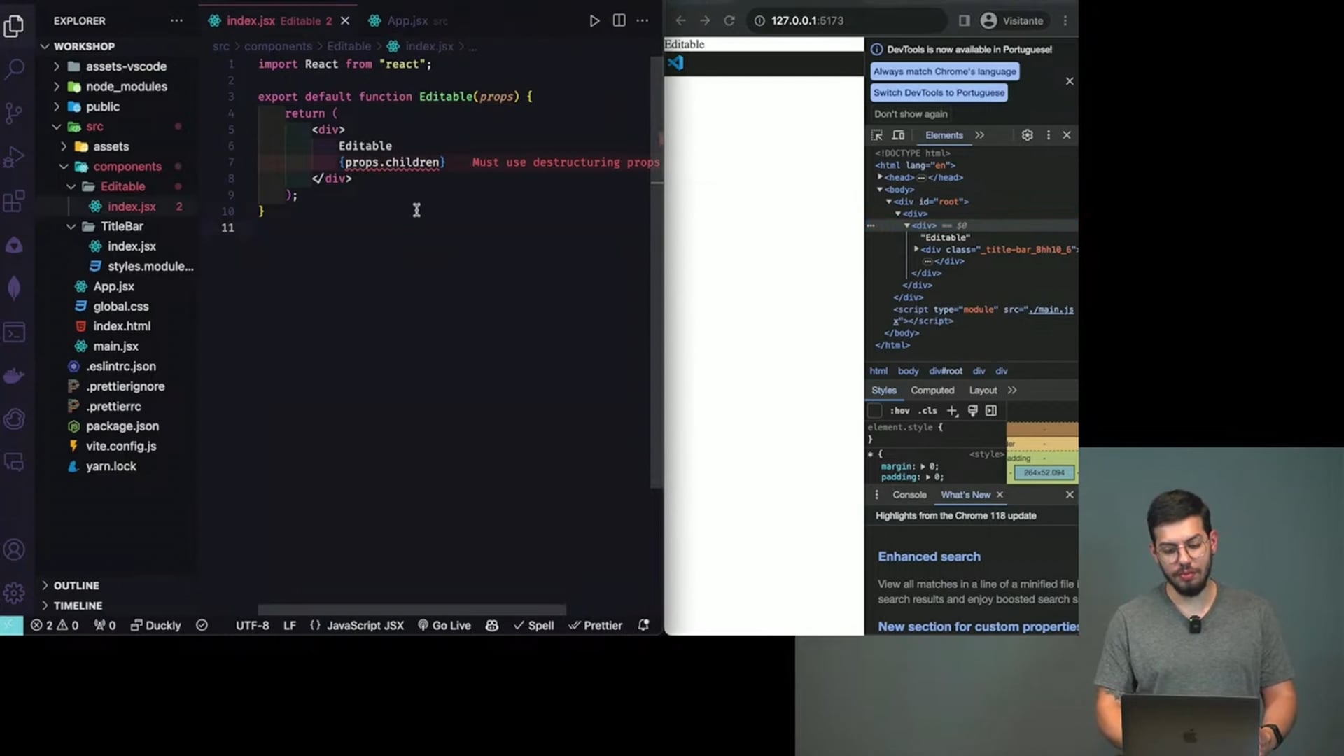 Discutimos a desestruturação de props no React e como desativar a regra `props validation` do ESLint para adaptar o código. Exploramos o Radix UI, uma biblioteca de componentes sem estilo, destacando seu uso prático com popovers personalizáveis.