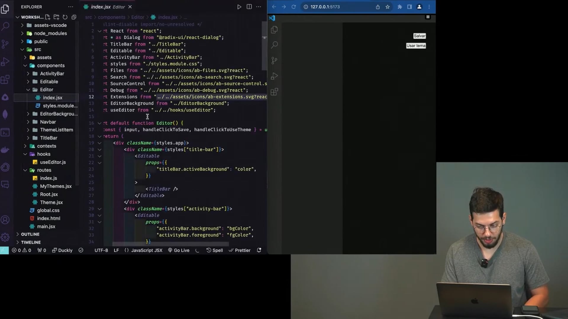 Neste vídeo, ajustamos o design dos botões da aplicação, alterando backgrounds, bordas e adicionando animações de hover. Buscamos harmonizar o estilo dos botões com o fundo do editor.