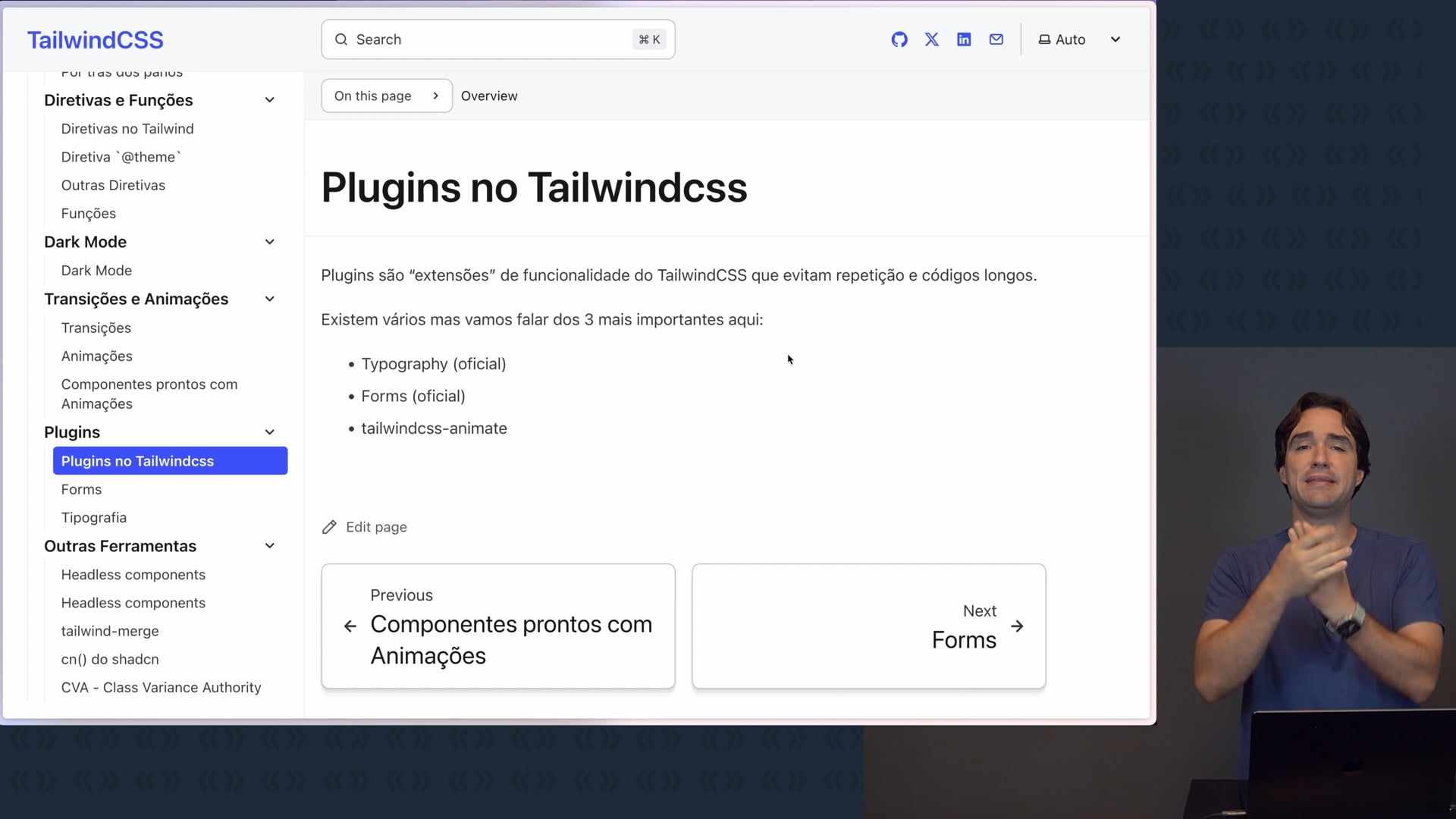 Discutimos plugins úteis, como tipografia e formulário, que simplificam a estilização e melhoram a usabilidade dos projetos.