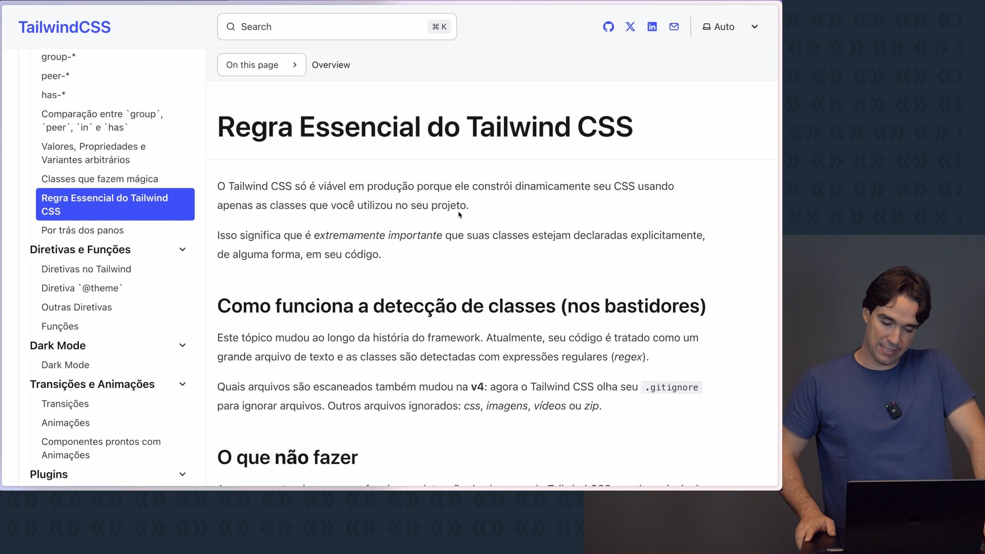 Entendemos como o Tailwind identifica e apura classes para criar um CSS otimizado, evitando classes dinâmicas que causam problemas.