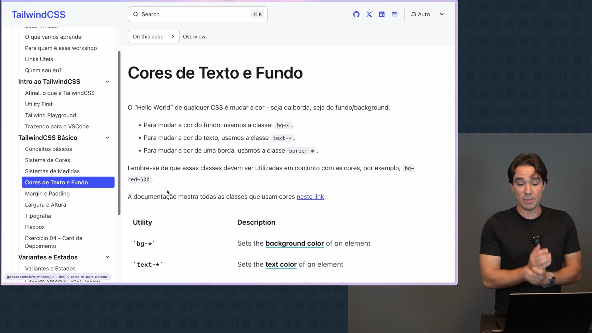 Apresentamos as classes do Tailwind para cor de texto, fundo e borda. Iniciamos um exercício prático para aplicar esses conceitos e criar botões estilizados conforme um design específico.