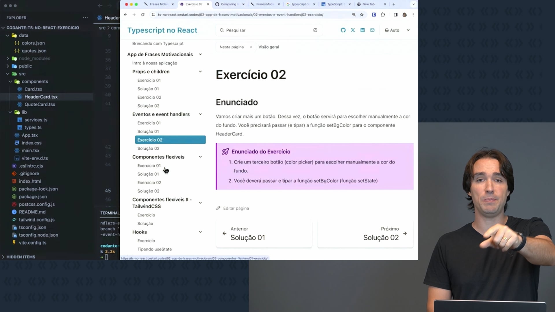 Criando um componente flexível em TypeScript. A ideia é extrair um componente Button, torná-lo flexível com props como onClick, children e disable e repassar outras props de botão de forma eficiente.