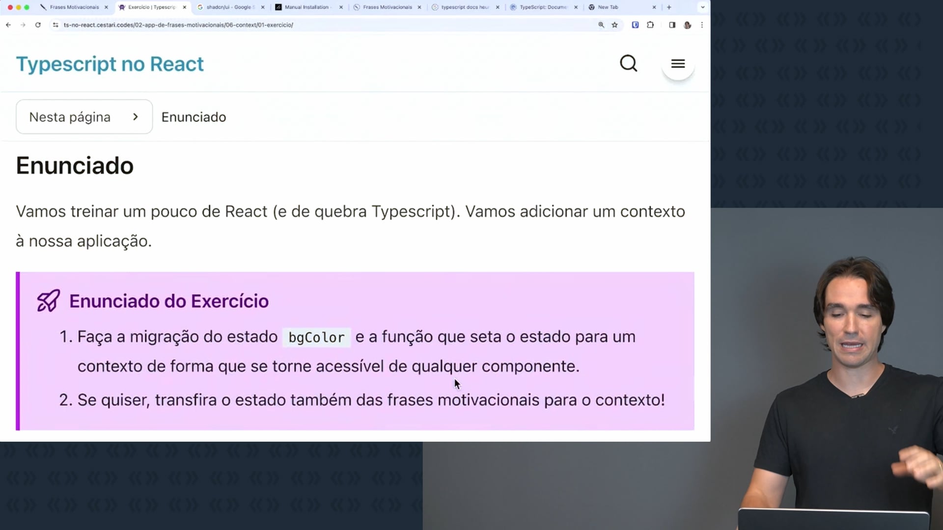 Vídeo sobre migrar o estado de um app React para um contexto, tornando-o acessível em qualquer componente. Também explora a transferência do estado das frases motivacionais para o contexto usando Context API.