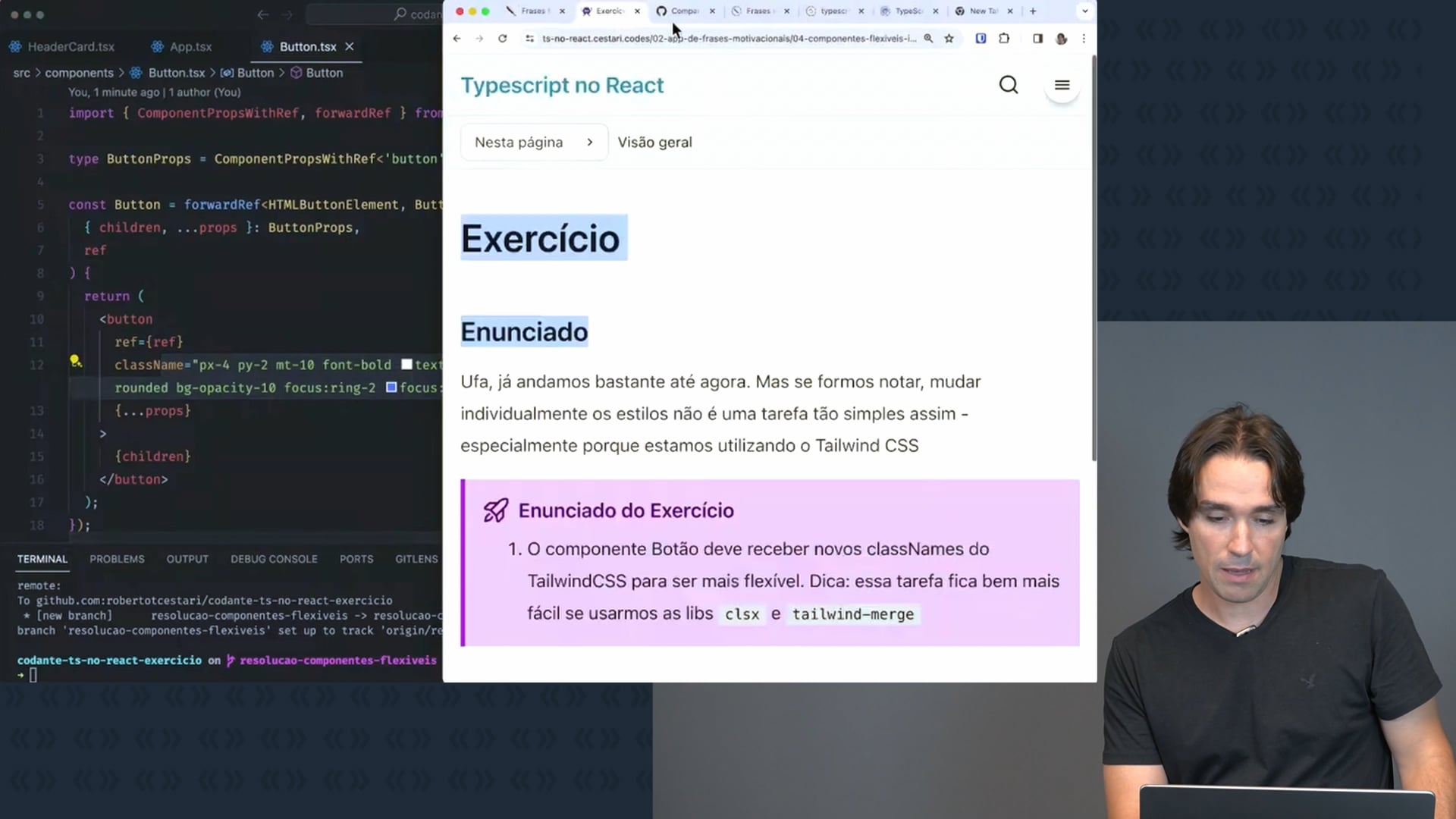 Problema de estilização de botões no desenvolvimento de interface. Dificuldades com propriedades CSS sobrescrevendo estilos anteriores. Exploração de soluções com tailwind.merge e CLSx para priorizar estilos sem perder formatação original.