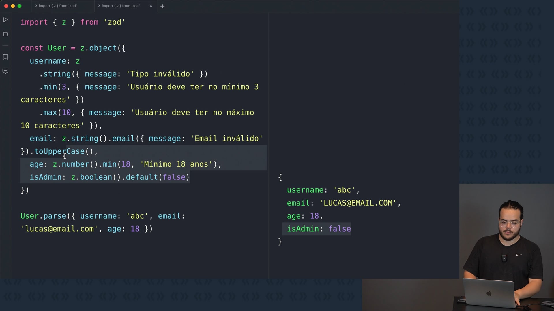 Criamos um esquema Zod para validar dois e-mails, garantindo que ambos coincidam usando o método `refine`. Exploramos também a configuração de validação dinâmica com React Hook Form, definindo o momento da validação como `onChange`.