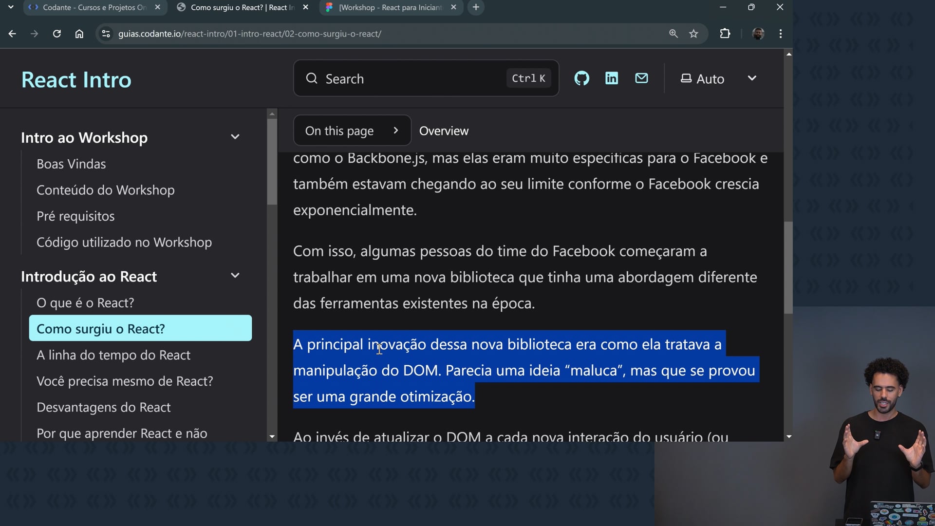 Criamos uma linha do tempo do React, destacando sua evolução desde 2011. Exploramos as fases do React: surgimento, introdução dos hooks em 2018, e a era dos server components, destacando o papel do Next.js.