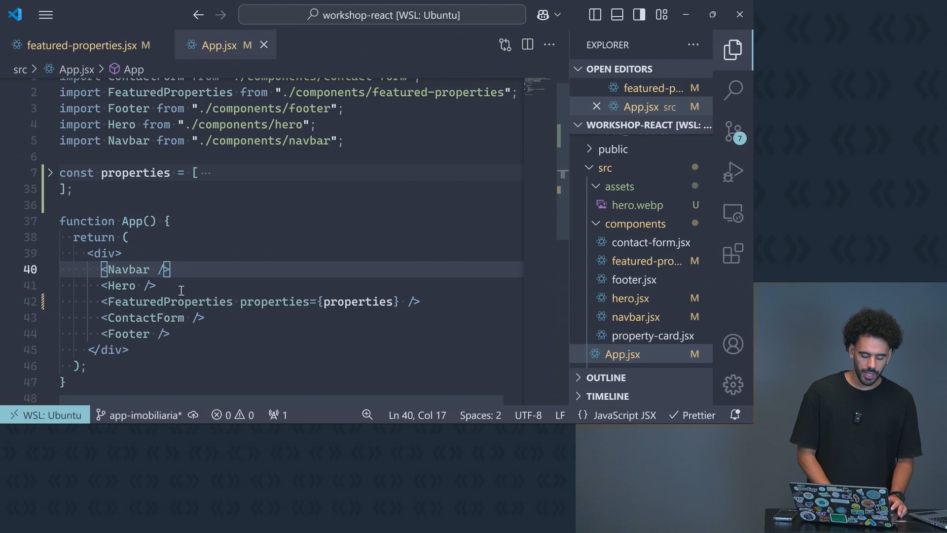 Discutimos como passar e receber props em componentes React, destacando que elas vêm como parâmetros e são objetos que podem incluir listas ou outros componentes. Demonstramos como usar `map` para exibir uma lista de propriedades dentro de um componente JSX.