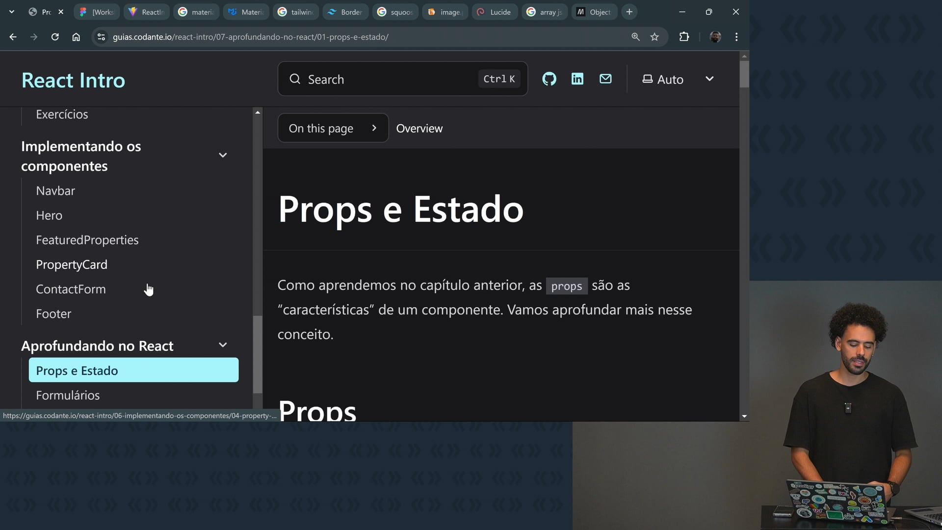 Aprofundamos conceitos de React, abordando props e estado. Discutimos a imutabilidade das props, como elas são passadas de pai para filho, e como podem ser valores JavaScript. Exploramos a comunicação entre componentes usando contextos ou funções.